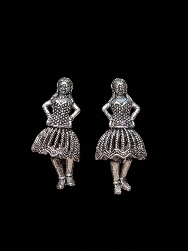 Chanchal – Silver Oxidised Dancing Doll Statement Earrings