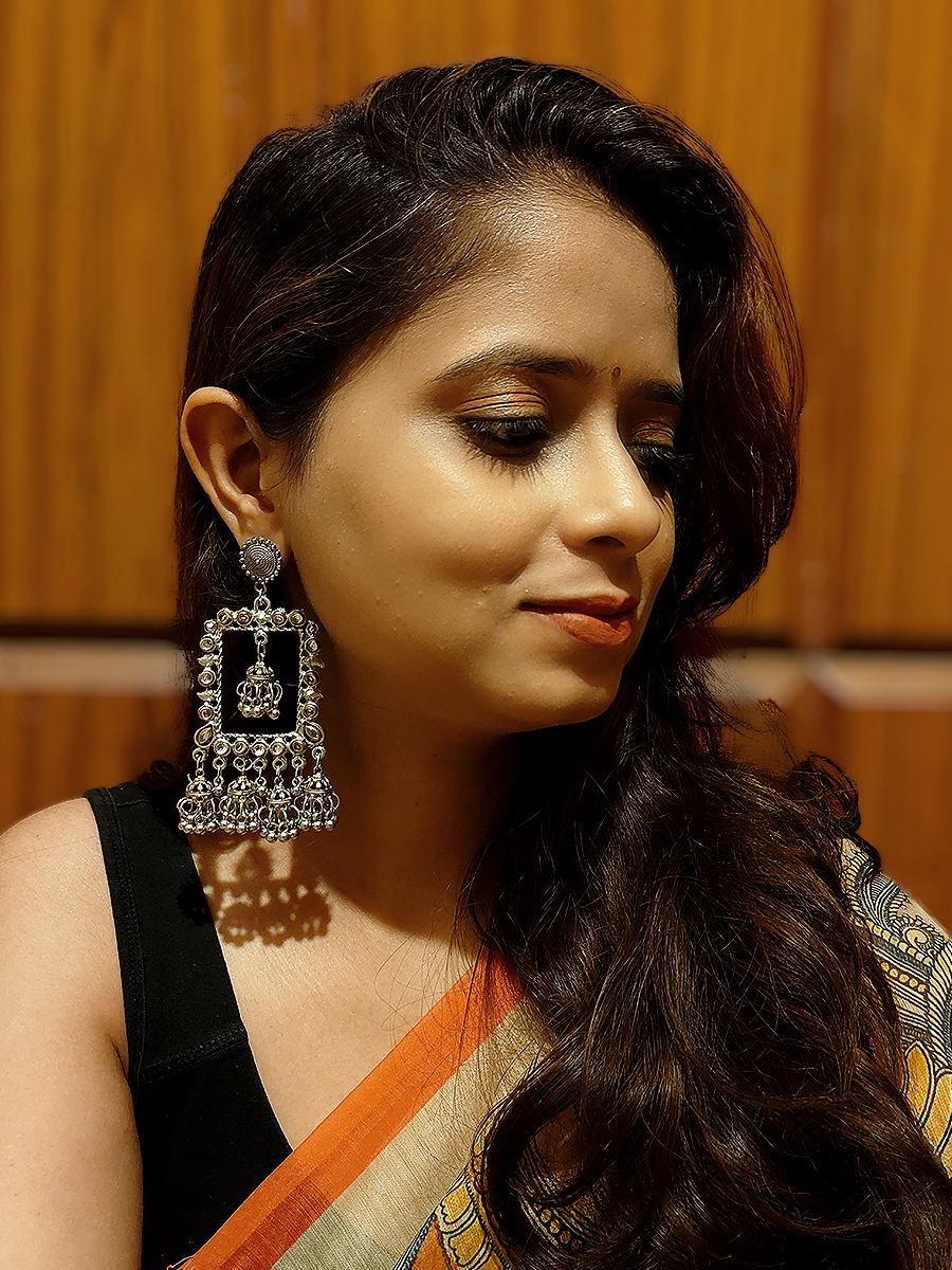 Fraymika/Chaukhat earrings are anything but ordinary! With bold silver tones and quirky shapes, they bring drama and delight to your festive ensemble. Think edgy elegance with an Indian twist — these earrings are the life of the party (and your Instagram feed).