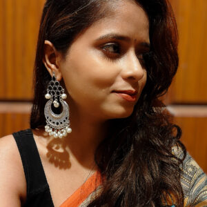 Add a vibrant touch of elegance to your ethnic look with our Mahira Earrings in Rani Pink. Designed with a striking teardrop-shaped stone and detailed oxidised silver finish, these earrings beautifully blend traditional craftsmanship with modern charm.