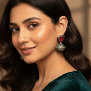 The rich Rani Pink stone enhances the royal appeal, while the intricately carved jhumka-style drops reflect classic Rajasthani artistry. Perfect for weddings, festive celebrations, and special occasions, these earrings effortlessly elevate sarees, lehengas, kurtis, and fusion outfits.