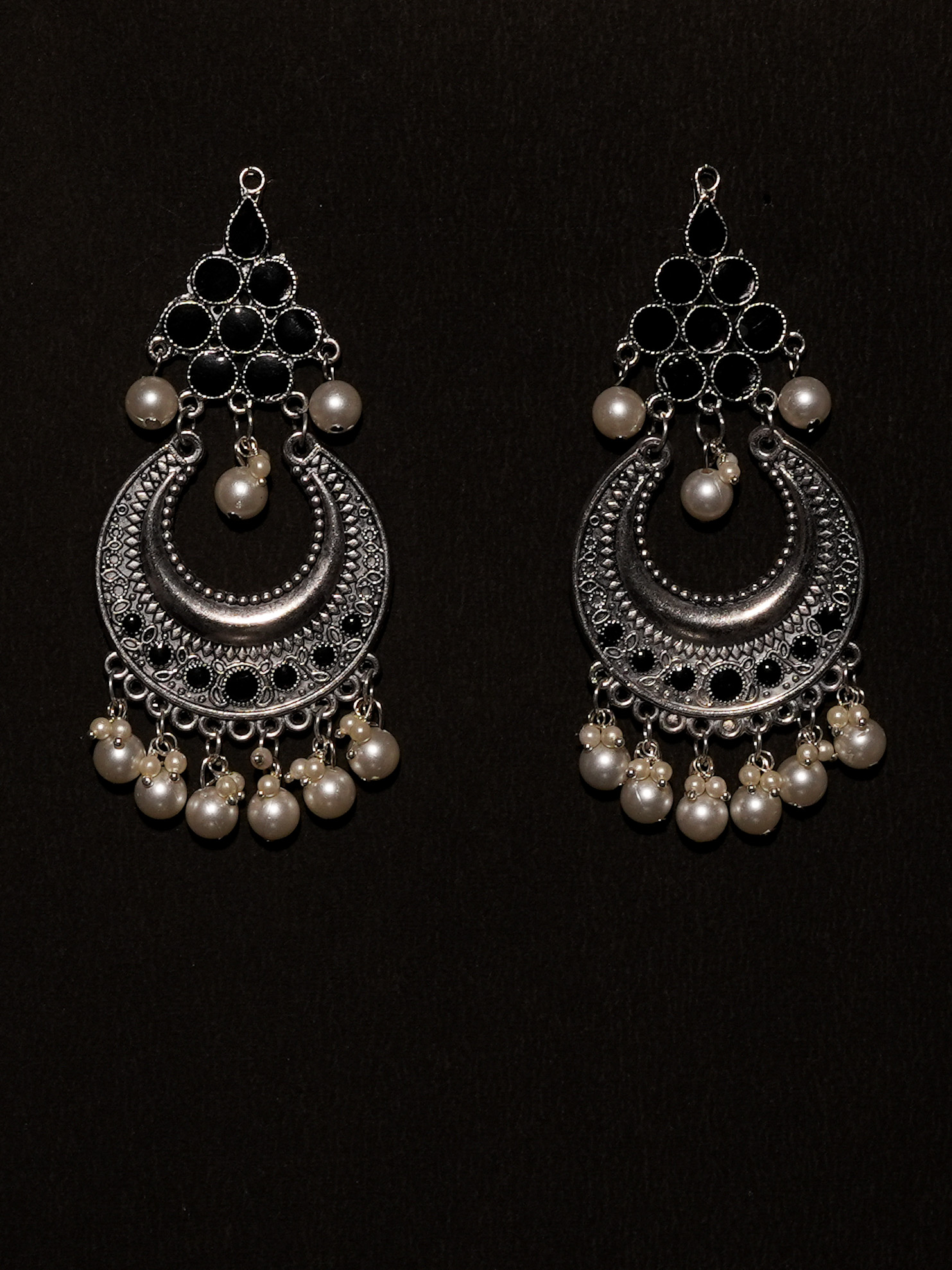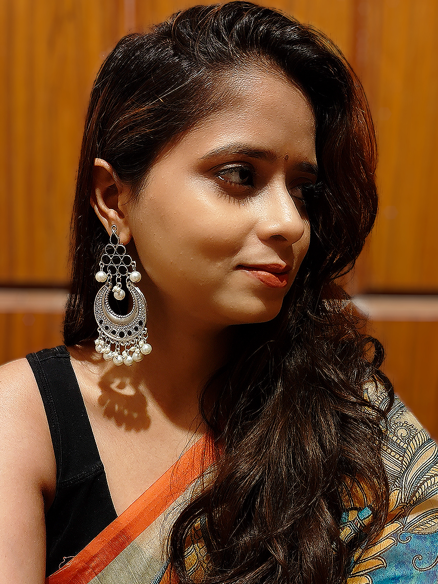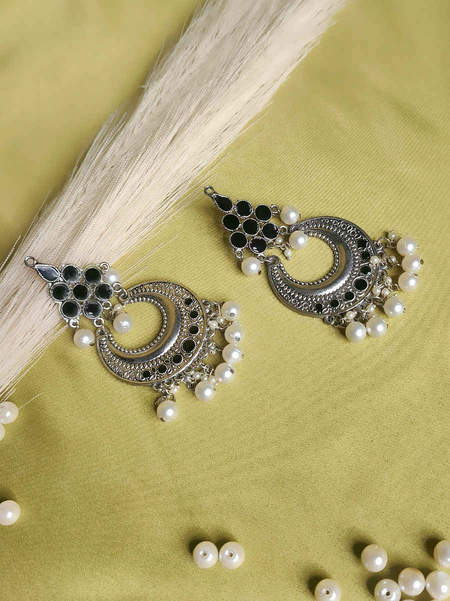 True to its name, Noor-ae-Chand mirrors the glow of moonlight with its crescent design, intricate silver detailing, and pearls that shimmer with every movement.